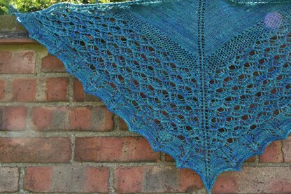 This pretty summertime shawlette features a lace stitch pattern worked on both sides, that results in an open fabric ideal for accessorising on warmer days. It is worked from the top down, beginning with a garter tab. The shawlette has a finished size of 20” (51cm) deep at the centre and 44” (111.5cm) along the top edge after blocking. Pattern tension is based on 20 sts and 34 rows to 4” (20cm) of stocking stitch after blocking. Since the lace pattern stitch is worked on both right side and wrong side rows and involves decreases through the back loop, this pattern is suited to knitters with some experience of lace knitting rather than beginners.