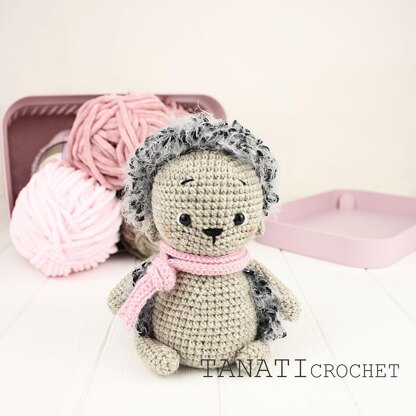 Material: • yarn • hook 2.0 or 2.5 mm • soft stuffing • scissors • 2 safety black eyes 8 mm • black thread for the nose and eyebrows • white thread for the pupils • pins for sewing parts at the right spot • needle for sewing