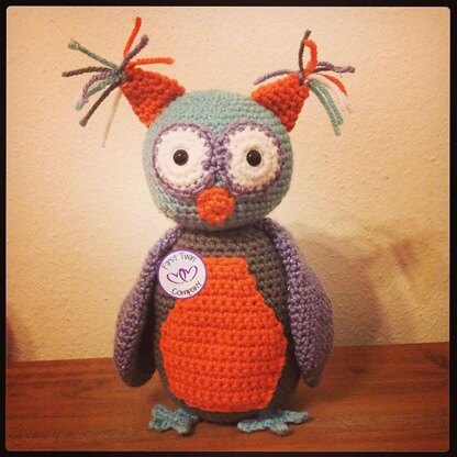 This pattern is for the owl amigurumi toy pictured above. Finished owl measures approximately 9.5 inches tall excluding the ears. Size of the finished product will vary depending on amount of stuffing used and tightness of stitch.