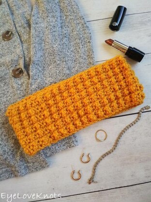 I am a sucker for texture, and I just love the look and feel of this stitch pattern. After publishing the Little Pebbles Scarf, I knew I needed a matching earwarmer. I hardly ever have my hair down, so earwarmers are one of my go-to cold weather accessories. I used about 63 yards of Red Heart Super Saver in Saffron for mine, but Bernat Super Value and Lion Brand's Basic Stitch are good alternatives (or your favorite worsted weight yarn! Just remember to take gauge). The adult small took just under 1 hour to complete. You will need to know how to single and treble crochet. Foundation Single Crochet (FSC) is used, and explained, and an alternate is provided. Beginner friendly!