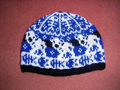 Cute little polar bears are all around this kid's beanie. With fish and bones, some snowflakes and a lovely crown of fish bones.