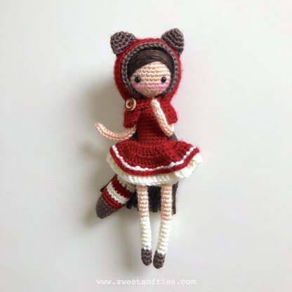 The Little Red Pandora pattern provides instructions for crocheting this sweet girl doll, and her red panda outfit. She works up quickly with her long, slender arms and legs. She wears a pleated dress skirt with a lovely lining detail, and her hooded capelet and red panda tail are removable for fun dress-up play. She can also be easily customized to have a fox girl or cat girl outfit as well, by changing yarn colors! Or, you can even try making the Little Red Riding Hood fairy tale character.