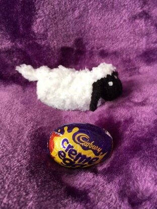Miniature Shaun the Sheep pattern to cover Cadbury's Creme Egg, ideal for table decoration at Easter.