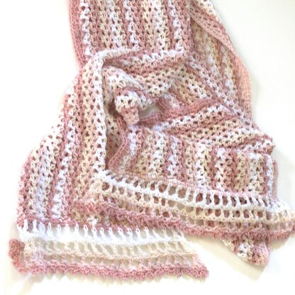This is an easy crochet shawl pattern, its appropriate for an intermediate crocheter or an adventurous beginner. Its lacy and pretty without being too complicated.