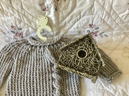 Perfect pullover for your toddler! Unisex design that is knit entirely in one piece with no seams! Generous sizing. Soft and warm. Simple knitting stitches throughout.