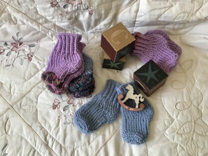 Perfect socks for baby/toddler! A combo of simple crochet and knit stitches throughout. Made entirely in one piece with no seams! Warm and comfy!