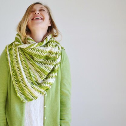 Lizzie (think of lime smoothie rather than of a name!) is a shawl that is rich in color and texture, and features a narrow and slightly curved triangle shape created by working both the increases and decreases at the same time.