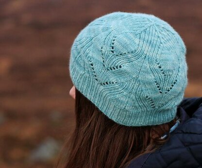 Pristine calm and windswept waters inspired this finely patterned lace hat and mitten set.
