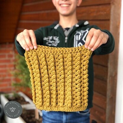 Loop BEN glänzt mit einem schönen Strukturmuster und ist absolut unisex. Verwendete Maschen: Stäbchen mit Fußschlinge, Stäbchen, Luftmaschen, Kettmaschen, Büschelmaschen und Relief-Büschelmaschen. Dies ist nicht unbedingt ein Anfängerprojekt, ihr solltet diese Maschen bereits können.