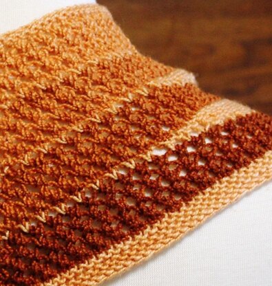 Just because it's warmed up is no reason to stop wearing hand-knits! This lightweight lacy cowl is a great use for that special skein of hand-dye or gradient set. Easy to work bands of eyelets alternate with short-row garter stitch sections and there's no purling until the final edge (3 rounds). Work it in a solid, in two colors, using a gradient kit, or in one of Miss Babs' crazy variegated colorways!
