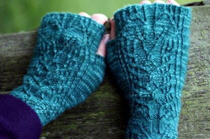 Decorative twisted stitches and etched leaves make for a graceful and warm winter accessory. Pattern includes both charted and fully written instructions.