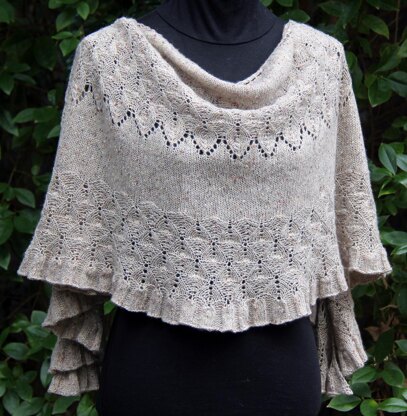 Louden Shawl is a crescent-shape shawl, featuring the texture and delicate and airy lace pattern and finished with a cute pleated edge. It is worked in a one-piece top down.