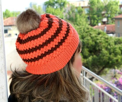 Cute striped hat, you will learn to knit Almond Stitch, pattern include photo tutorial and link for video, this stitch make your fabric extra squishy and textured, great for a warm and cozy hat.