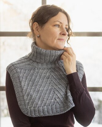 Love Armour is a warm, lovingly crafted cowl. It’s a protective, cozy shield against the winter chill. The cowl is quick to knit, with an interesting texture created by twisted stitches. The pattern includes two sizes: adult and child.