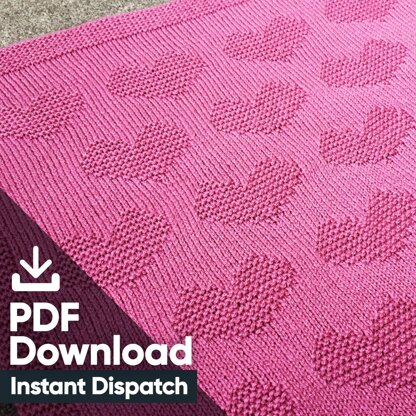 The pattern has a simple garter stitch border to the edge, with an all over heart repeating design, that will be sure to make your nursery look complete.