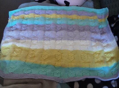 This baby blanket is such a cute design, with little hearts knitted into it, making it that much more loveable.