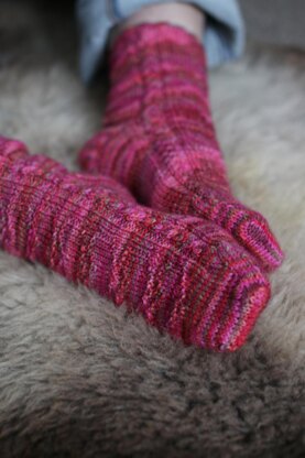 These charming socks feature a textured heart surrounded by elegant cables which wind their way down the front panel of the socks. The socks are knitted from the top down and use a varying amount of yarn depending on the length of foot knitted. A women's UK size 7 sock for example, will leave approximately 20g of yarn unworked, which would be ample to work an extra pattern repeat in the leg of each sock if preferred. Approximately 240m is required to knit the same size socks as shown. The pattern is written assuming DPNs will be used so if you use a different technique, pay particular attention to division and positioning of stitches on the needles.