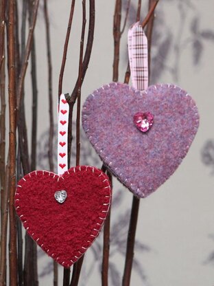 These love heart decorations were made from felted pieces of woollen fabric that were originally knitted using a feltable 100% wool yarn.