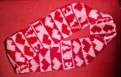 I wanted to design a scarf that would have colour work but look good on both sides of the scarf, keep me cosy and not fly away in the wind. With that in mind, I decided a double knitted Mobius was the answer. What is a Mobius? It is joined, but has one twist in the fabric – it forms a very flattering cowl drape on your neckline. Don’t want a Mobius? Just increase the number of repeats and don’t join the scarf at the ends. This pattern contains instructions for both options. Double knitting was chosen because it forms reversible colour work. My problem with this plan? I didn’t know how to double knit. So I made up this pattern and taught myself! While this pattern is labeled intermediate, it is suitable for beginners to double knitting, like myself!