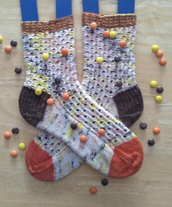 These socks are written to use 4 colors of yarn. One large skein of the main color and then 3 mini skeins.