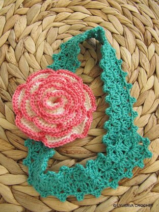 CROCHET PATTERN for crochet headband with crochet rose flower.