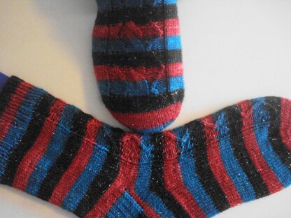 YARN: This pattern is better suited for solid or lightly tonal yarn to show off the detail of the mock cables. They may get lost in a heavy variegated yarn, but a subtle variegation should be okay. I did the sample in the stripes and the pattern was still visible.