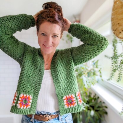 This versatile top-down cardigan will be a staple in your wardrobe. Make it plain for everyday wear, work in stripes for a great stash buster or add Granny squares to make a modern crochet statement piece. With a deep V neck and simple granny stitches, you’ll be making more than one, whichever style you choose.