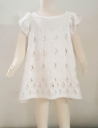Dress your little girls in this sweet Vintage Charm Pinafore Dress.The Lucky Girl Pinafore Dress will delight everyone. Girl will love the soft feel and all the others will love how cute it looks. Perfect for casual or more formal occasions. Wear by itself, or layer over your favorite dress. The dress features an easy to work Four Leaf Clover Eyelet Lace Pattern, that is quick and easy to work. Cute Flutter Sleeves and a generous fit will ensure it will be worn years to come. Buttons at back. Sizes: 1-2 years, 3-4 years, 5-7 years To fit chest: up to 22- 24- 26 inches or 56- 61- 66 cm Materials: Fingering weight (4 ply) cotton yarn 2- 2- 3 x 100 g balls Yarn Suggestion: Patons 100% Cotton 4 ply or Sirdar Cotton 4 ply Tension/ Gauge: 28 sts and 36 rows make 10 cm or 4" square on larger needles Knitting needles: 2.75 mm and 3.25 mm (US 2 and US 3), a circular 60 cm or 24" works well