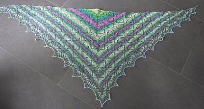 This shawl is easy to adjust to any size you like, add beads for more sparkle if you like. The example is made from lace weight katia jaipur an knitted an extra chart repeat. Following the instructions this wrap can be made out of 100 gr / 420 m. fingering yarn.