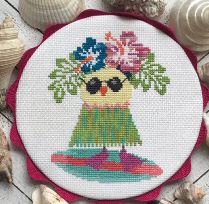 Here is Luhu Bird all ready to catch some waves in his grass skirt and flippers. He's a fun little guy to take along for some relaxing vacation stitching. Whole cross stitches as well as some half stitches, back stitching and french knots make this challenging but not too challenging. This is an instant download digital PDF counted cross stitch design so you can begin stitching right away!