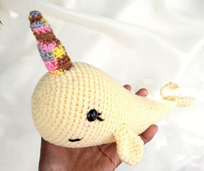 Lulu is a nice sized stuffie measuring approximately 9” from the tip of the horn to the tail. She can be carried by her tail, fins or even in the crook of the arm.