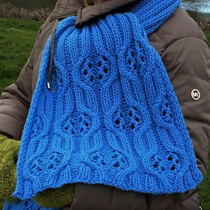 The scarf is worked flat, with notes given for adjusting width and length, to suit any style. The pattern is written out and charted.
