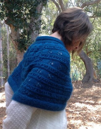 As summer days turn to fall, the cozy Lumi Capelet will keep you warm during chilly mornings. Ruched stripes alternate with a simple but elegant lace design in this easy to knit accessory.