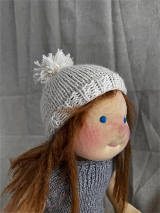 The Lumi Doll Hat is a simple and cozy knitted hat designed for Waldorf-style dolls. It is worked in the round from the brim to the top and has a clean, timeless look that pairs beautifully with handmade doll outfits.