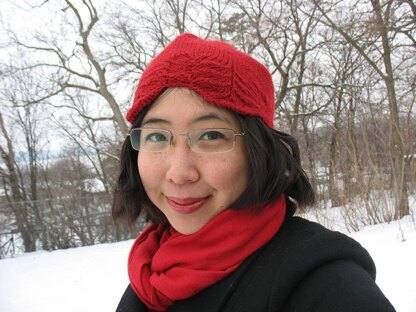 The sculptured stitch pattern is easy to work and creates feminine scallops to frame the wearer's face. A heavy worsted weight yarn is knit at a tight gauge to create a dense, velvety fabric with great stitch definition, and working all yarn overs through the back loop closes them up, helping to keep ears toasty when the cold winds blow."