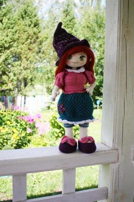 The Magic Girl Pattern contains instructions for crocheting this sweet doll from start to finish (35 cm height). In this pattern, you will be guided through the doll-making process with 35 pages of written crochet instructions and photos. You will learn how to make the doll, clothing (hat, pants, skirt, blouse and shoes), hair, and eyes with a special embroidered eyes tutorial. The doll is made with wire frame, so that she can move her arms and legs. NOTE: The doll has CROCHET body and KNITTED outfit. Level: Intermediate. You must know to work basic crochet and knitting stitches: sc, dc, hdc, knit, purl.