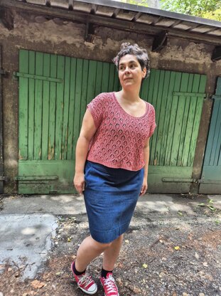 The shrug is worked flat in a simple repeating pattern. Once the main piece is complete, the sides are seamed to form sleeves, and a ribbed border is crocheted all around for a clean, polished finish.