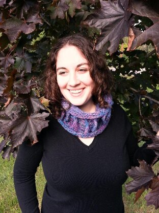 This cowl was designed using One Lupine Acadia, a soft, aran weight wool that snuggles nicely next to the skin.