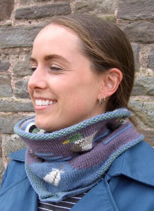 The Mallards cowl features intarsia, pin tucks and a cute box pleat at the bottom of the slightly elongated front. It’s partly lined to give the fabric more body, keep you warm, and make for more wearing options. The width can be adjusted by the little belt - tabs to hold the belt are knitted in.