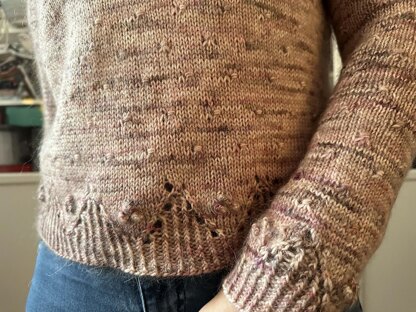 Yarn : This sweater is knit with a yarn of type fingering + Lace weight = Dk. Extrafine Fingering from Tricot & Stitch col. Cocooning and kid silk from Drops col. 41. Approx: