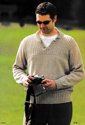 This is a pattern for a Rib Yoke Jumper, originally published in Knit Today. It is in stocking stitch with a rib yoke, edges and collar. It has two buttons at the neck. Photos Knit Today.