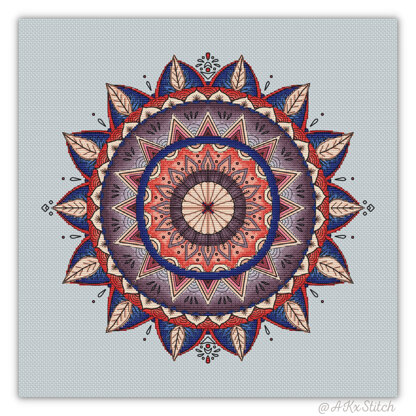 Mandala "Retro Red" Counted Cross Stitch Pattern and PDF Digital Download. Cute and Easy counted cross stitch embroidery pattern featuring Mandala, perfect gift for some mindful relaxing stitching, choose from 5 different colour palettes.Stitched on Aida 14ct: 32 x 30 cm (13 x 12 in)DMC Threads: 18 solid colours (2 blends)Used stitches: full cross stitch, backstitchSkill level: Beginner / IntermediateStitch time: 285-395hCross stitch pattern in PDF, Instant Digital Download includes: 1) cover page with preview; 2) instructions, symbols key and shopping list (DMC thread colour numbers and estimates, as well as fabric options); 3) two black and white charts, with and without backstitch; 4) two colour charts, with and without backstitch; 5) single-page file for Pattern Keeper (available on request).Please note: This pattern is for personal use only - not for commercial use. You can't make copies of our charts to distribute (either as PDF or printed versions) but you can definitely sell your finished cross stitch work.