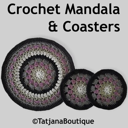 Crochet Pattern Mandala/Table Mat and Coasters Set. The pattern is written in US crochet terms but with a conversion at the beginning of the pattern to UK / Australian terms. Its just that some of the names of the stitches are different. Mandala diameter approximately 21 cm ( 8.2"). Coasters diameter approximately 11.5 cm ( 4.5”). Materials & tools you will need: ★ Cotton yarn approx. 60 gr - DK, Double Knitting in UK, Light Worsted in the USA, 8ply in Australia. ★ Crochet hook size 3.5 mm. ★ Yarn needle to weave in ends (optional).