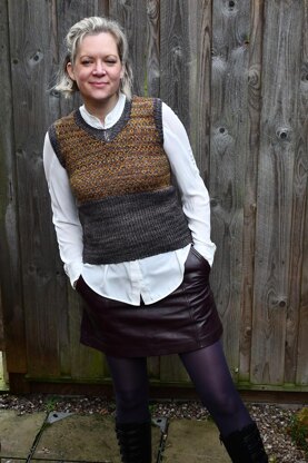 This is a fairisle tank top perfect for layering. This works really well with a superwash DK as the gentle stretching of the merino relaxes the fairisle really well.