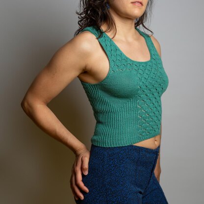 This top is knitted from the top-down, beginning with the straps. The Front and Back are knitted flat until armholes and then worked in the round after joining at the underarms.