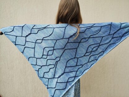 Construction: The shawl is of slightly asymmetrical triangle shape, knitted from one corner starting with just several stitches. The construction is modular, using schematics and charts the shawl can be made bigger or smaller. In case if you are intermediate or advanced knitter using some basic stitches and some principles described in the pattern you can create your own unique version.