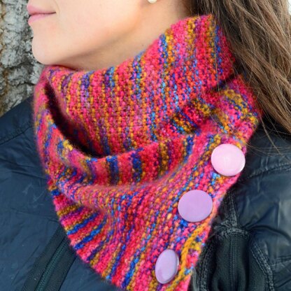 I can't help but think that cashmere feels the need to be touched just as much as we feel the need to touch it. What better place to have it rest than around your neck, giving you a warm hug on blustery days. This beautiful variegated yarn calls for a simple stitch pattern so the colours can be the star of the show. Add a couple of chunky buttons for a little extra interest and you've got a soft, stylish accessory to show off all winter long. Mariette is worked flat in seed stitch - TV knitting at its best! Buttons are sewn on near the cast-on edge. The scarf is intended to be wrapped around the neck two times and then buttoned closed, echoing the infinity-scarf style without having to cast on 300 stitches.