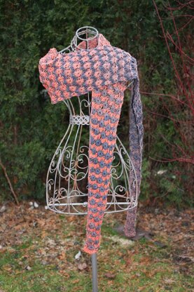 Anleitung in deutsch, pattern in English available. I created a floral pattern in which the little roses and the background sometimes set themselves apart and sometimes align. Through the changing colors the flowers come to the fore sometimes, and sometimes take a backseat. To make sure the pattern is not too unsettling it is reasonable to use a yarn with long color transitions. Use a new thread for every other row. Work with two balls of the same colors, but with different colors at the beginning. This way the pattern will evolve all by itself.