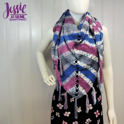 This pattern can be found for free online at jessieathome dot com/mariposa-shawl/