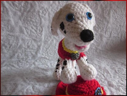 Marshall is a firefighter Dalmation. Marshall measures approx. 5 inches tall and about 7 inches long. His spots are made with fabric paint. This is a 8 page pdf file with many helpful pictures to help you better understand the pattern.